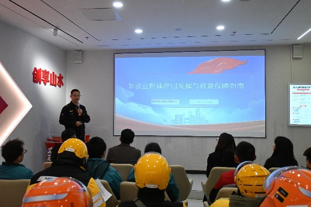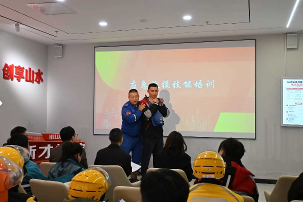 活动还邀请了蓝天救援队教官现场传授海姆立克急救法等实用技能,为“小哥”们的安全骑行增添保障,让服务从基础关怀向素质赋能升级。山水城相关负责同志深情寄语,勉励大家爱岗敬业、融入发展,并呼吁各方持续做实做细服务保障,共同营造关爱新就业群体的良好氛围。
