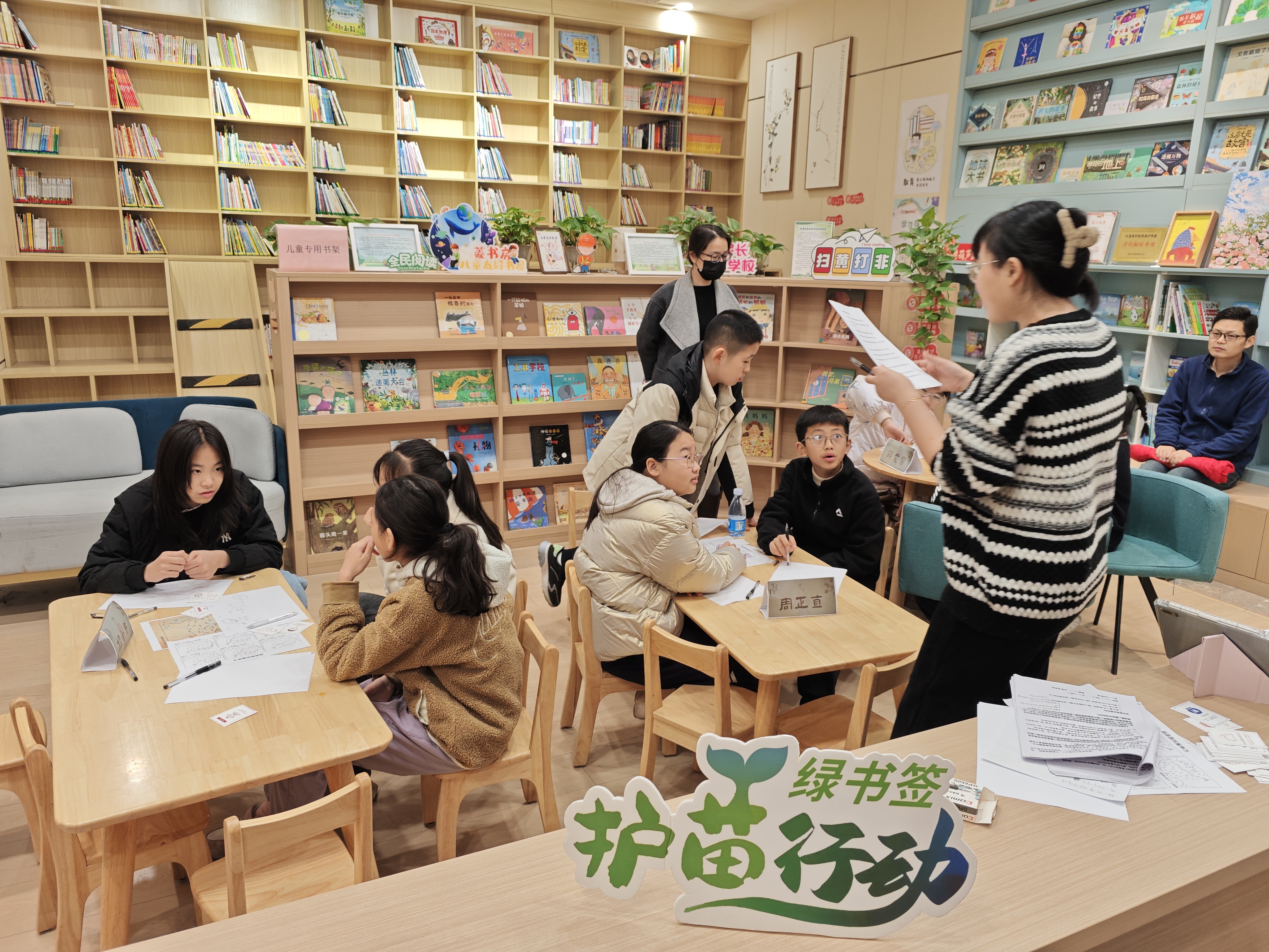 为深入推进“绿书签护苗”专项行动走深走实,切实引导青少年远离有害出版物及网络不良信息,树立“读好书、善读书、读正版书”的健康阅读观念,筑牢青少年健康成长的思想防线与安全屏障,近日,新安街道菱湖社区新时代文明实践站联合江苏艾迪讯科技文化有限公司,精心组织开展《荔智密卷:绿书签行动》主题剧本阅读活动,10余名青少年在家长的陪伴下踊跃参与,沉浸式解锁护苗新知识。