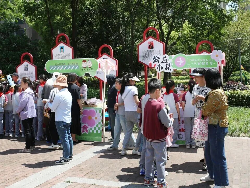 “公益市集”里,“法律知识转盘”“垃圾分类大富翁”将教育融入游戏,孩子们排队答题,学会规则意识;“花田创意集市”中,孩子们用树叶、花瓣拓印自然画,设计跳蚤市场……丰富多元的活动,为孩子们增添了寓教于乐的好去处。