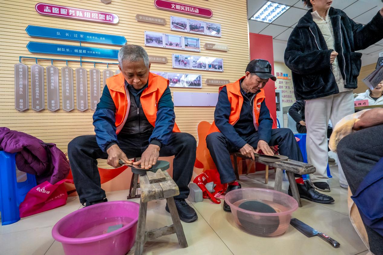 生活服务区同样热闹非凡。手机贴膜摊位前,志愿者小王根据居民提供的手机为居民仔细贴膜,额角渗出细密的汗珠;磨刀摊位上,李师傅的砂轮与菜刀摩擦声此起彼伏,三分钟便让锈迹斑斑的菜刀焕然一新;理发摊位上,志愿者娴熟的手法不一会就为王阿姨理了一个利落的发型;法律咨询台前,江苏路泰律师事务所的律师正耐心解答居民关于房产纠纷、遗产继承的疑问,用通俗语言将法律条文转化为“生活指南”。