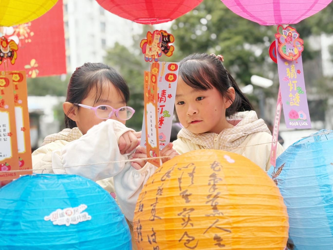 猜灯谜是元宵传统雅事,富有民俗韵味,也是社区凝聚邻里与“新”力量的重要纽带。活动现场,红灯笼与谜题彩纸错落悬挂,喜庆满满。社区精心准备的百余条谜题,涵盖字谜、成语、民俗及生活常识,更融入社区治理、文明新风等特色元素,寓教于乐、老少皆宜。“平时忙着送件,很少有机会参与社区活动,今天猜灯谜不仅收获了乐趣,还感受到了浓浓的元宵氛围,觉得自己真正融入了这个大家庭。”一位顺丰快递员猜中了谜题纸条,脸上满是喜悦。