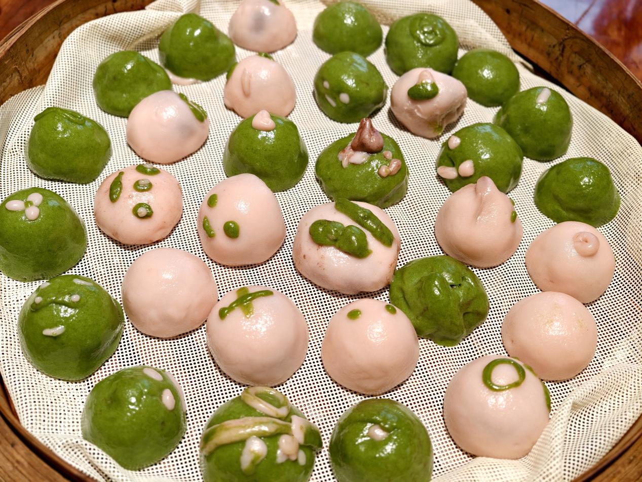 宏凤非遗体验馆内,蒸笼冒着热气。传承人阿姨一边示范,一边娓娓道来江南春日食俗与文化韵味。大家携手捣麦汁、揉青团、做樱花团,在动手实践中感受时令美食背后的人文智慧与匠心。“出锅咯!”掀开蒸笼的那一刻,清香扑面而来。青团油亮圆润,像一颗颗墨绿色的珠子。“看!我把春天包进了团子里!”分享环节,孩子们顾不上烫,咬一口,糯米黏黏软软,豆沙甜甜暖暖,糯叽叽的甜蜜在笑谈中流淌。