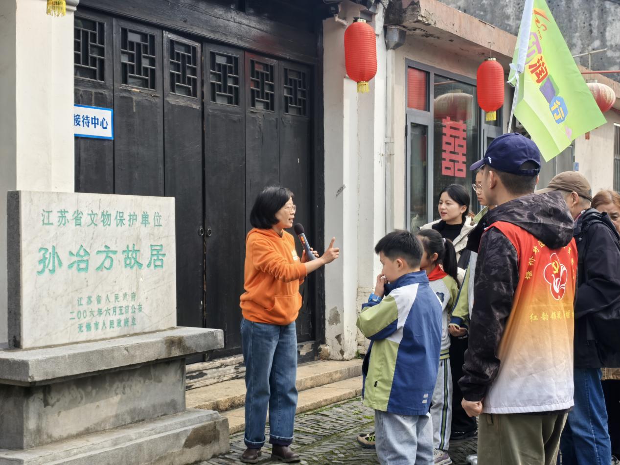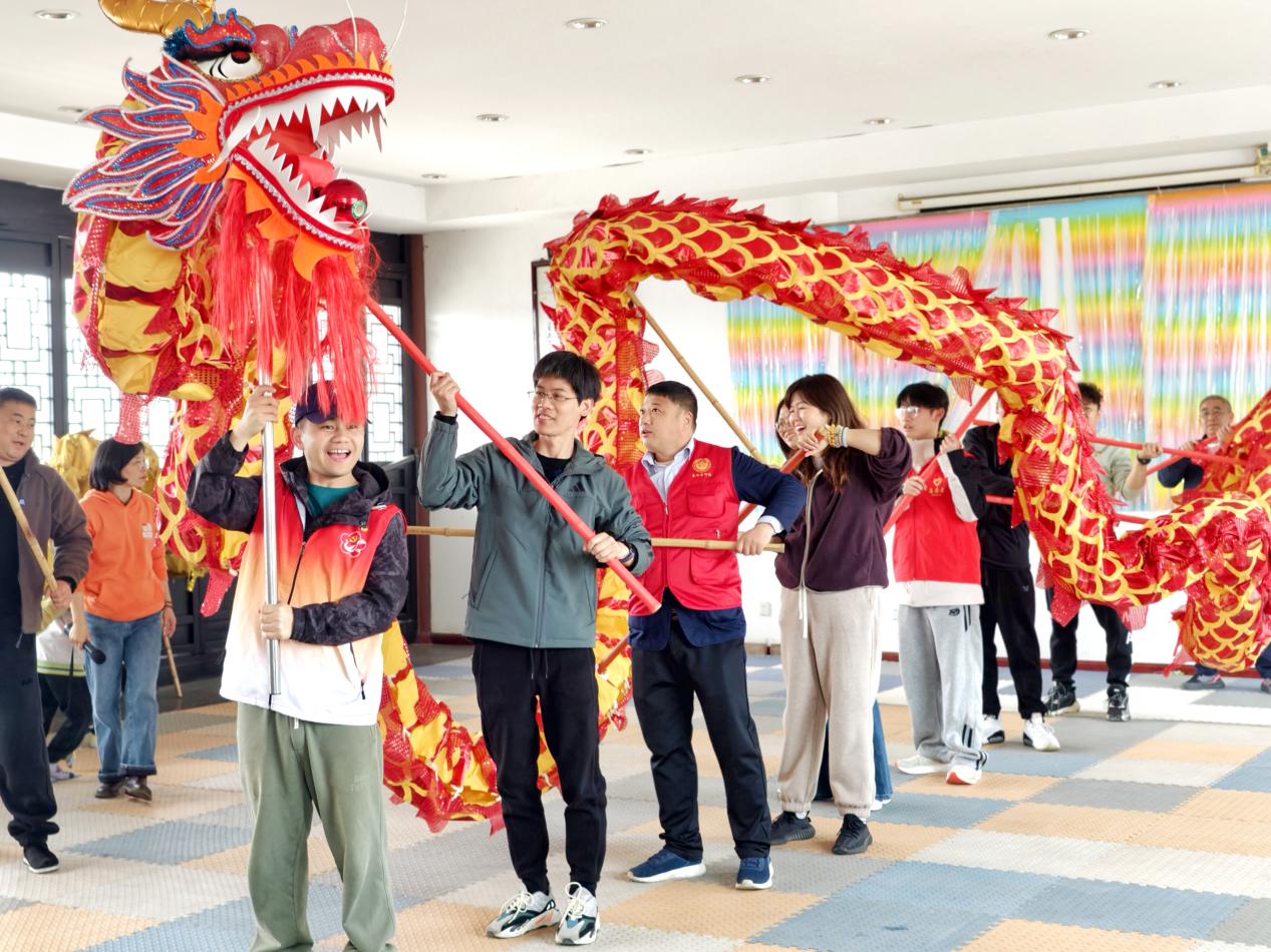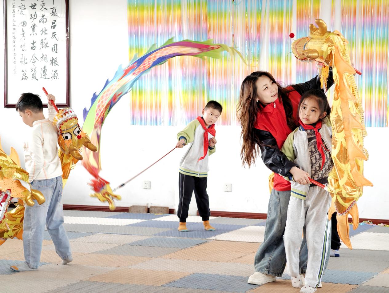 礼社古街青石板蜿蜒、文脉绵长,作为江苏省传统村落、无锡市历史风貌街区,处处藏着岁月底蕴。在志愿者“一屋一史”的讲解中,研学队伍沿着青石板路探访古街风貌、文保点位与名人故居,聆听乡贤故事,感受本土家风传承。“往左!要追上龙珠啦!”非遗舞龙体验掀动高潮,彩龙翻腾、笑语盈盈,大人、孩子携手协作、共舞彩龙。围观的家长举起手机抢拍,有位爸爸索性撸起袖子加入,和孩子们并肩“驯龙”。