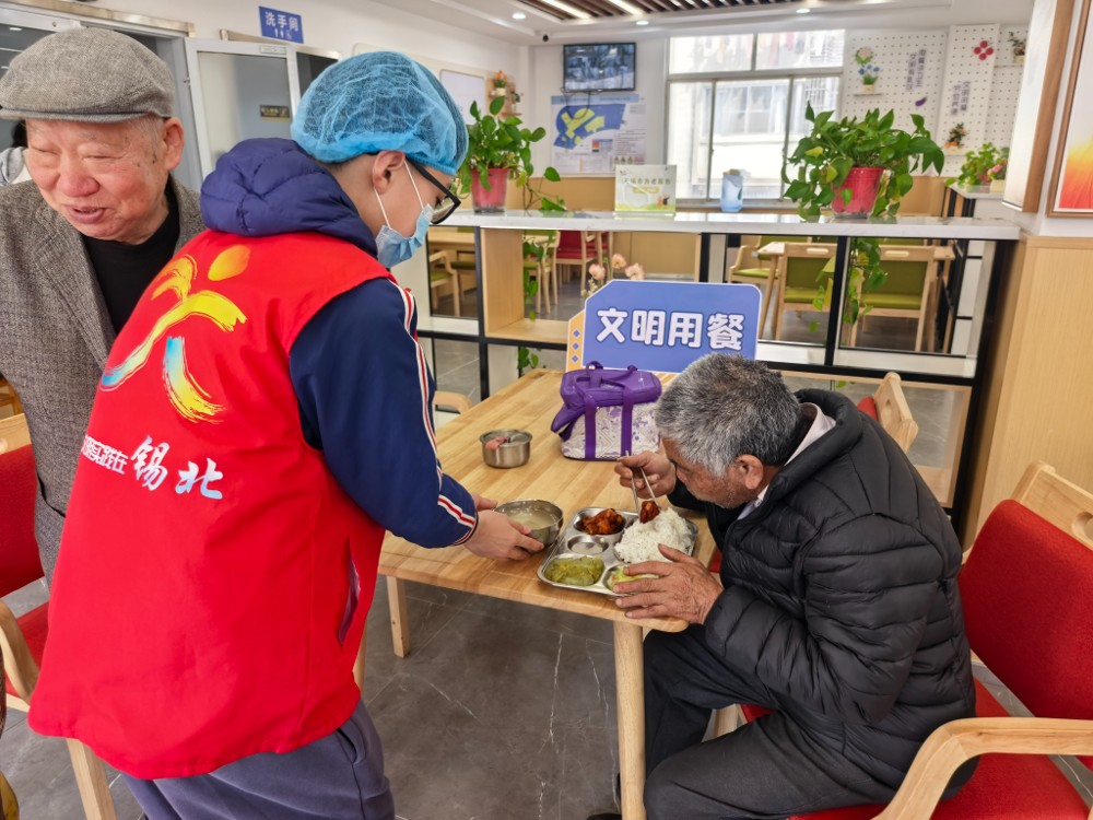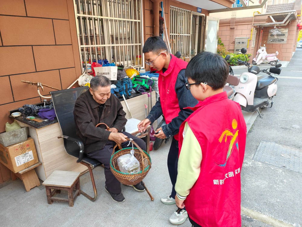 在小区助餐中心,“小小书记”们化身暖心小帮厨,分发餐食、盛汤打包,动作有模有样。随后,他们拎着热乎的饭菜,跟随党员楼栋长上门看望独居老人。10岁的小豪不仅把饭菜递到老人手中,还主动拿起抹布擦净桌椅,轻声询问老人身体。平日里活泼好动的他,此刻格外认真。孩子们在实践中读懂了“邻里守望”的温度。