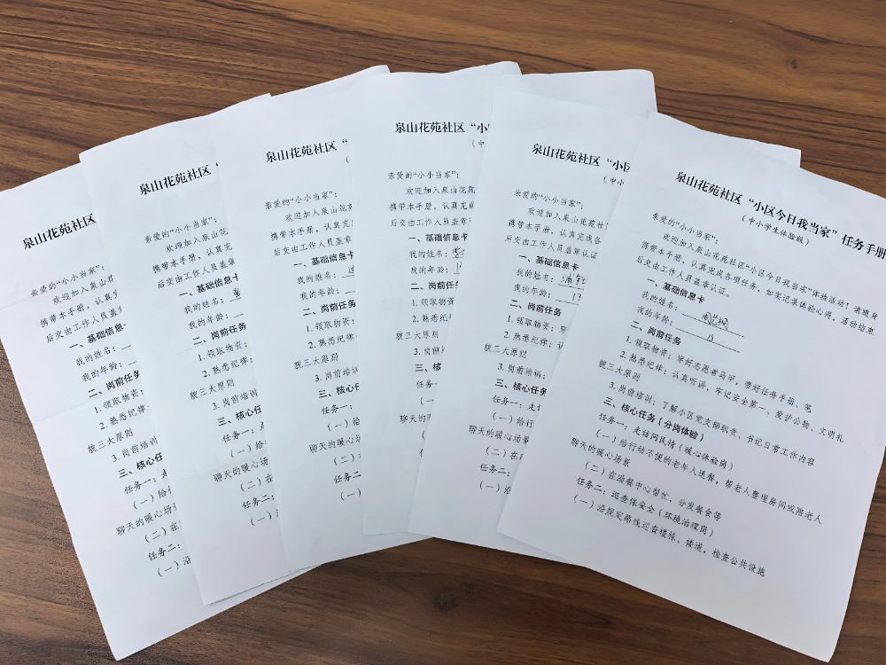 “小区书记每天都要做哪些事?”活动伊始,小区党支部书记用接地气的语言,为6名六至九年级的孩子们上了一堂生动的“岗前课”。从民情走访、助老送餐,到环境整治、便民服务,一桩桩小区里的“关键小事”,让孩子们明白了基层工作的琐碎与温度。穿上志愿者红马甲,接过任务手册,孩子们的眼神里满是好奇与郑重——一场别开生面的“当家”之旅正式开启。