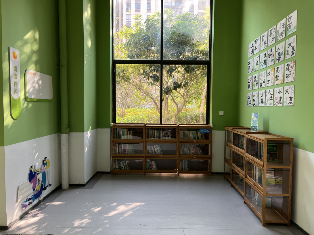 阵地焕新,楼道飘满书香气。针对居民反映的儿童阅读、娱乐场地不足问题,社区活化利用架空层闲置空间,成功入选市级“幸福楼道”。在天骄铭邸222、223号楼,儿童乐园、彩绘游戏区与阅读装置相映成趣,二十四节气主题的阅读氛围布置格外温馨。书架上,儿童绘本、人物传记等多元书籍整齐排列。社区推行儿童荐书、楼道自循环的维护模式,既为孩子们搭建了专属阅读天地,也引导居民主动参与社区营造,文明和谐的邻里氛围在书香中悄然生长。