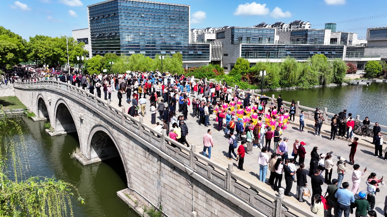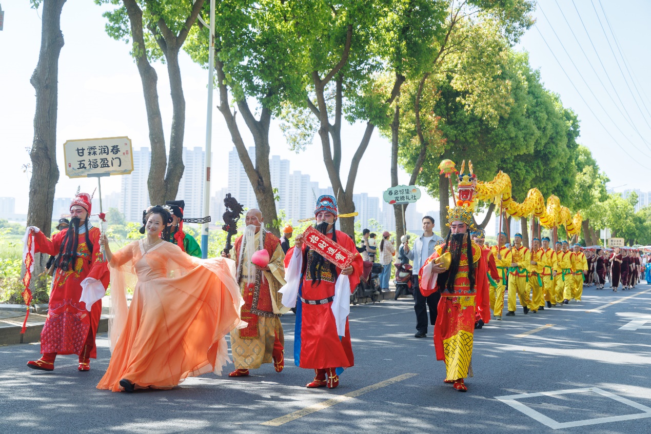 为充分展现老镇新城“各美其美”的人文风貌,向广大市民游客多维呈现玉祁街道文旅特色内涵,今年玉祁街道将“三月三”凤阜民俗文化活动的开幕式放在了春意盎然的唐平湖畔。在湖光春色的环抱下,轻松的快板说唱《莫让触网变触礁》向市民游客传递文明上网、绿色上网、健康上网的理念,引导市民群众进一步树牢网络安全意识。以此为契机,玉祁街道启动2026年网络文化季,为后续“e马当先·玉链新程”“e心向党·薪火玉承”等一系列网络文化活动开好头、起好步。启动仪式现场,玉祁双套酒酿造技艺、玉祁龙舞、脚踏糕制作技艺、蹄髈制作技艺等非遗传承人通过“非遗拼绘”的形式,共同描绘玉祁非遗文化街区的美好蓝图。在万众瞩目中,第十五届玉祁“三月三”凤阜民俗文化活动正式启动,伴随着锣鼓声响起,“三月三”的固定节目——民俗巡游浩浩荡荡出发了。