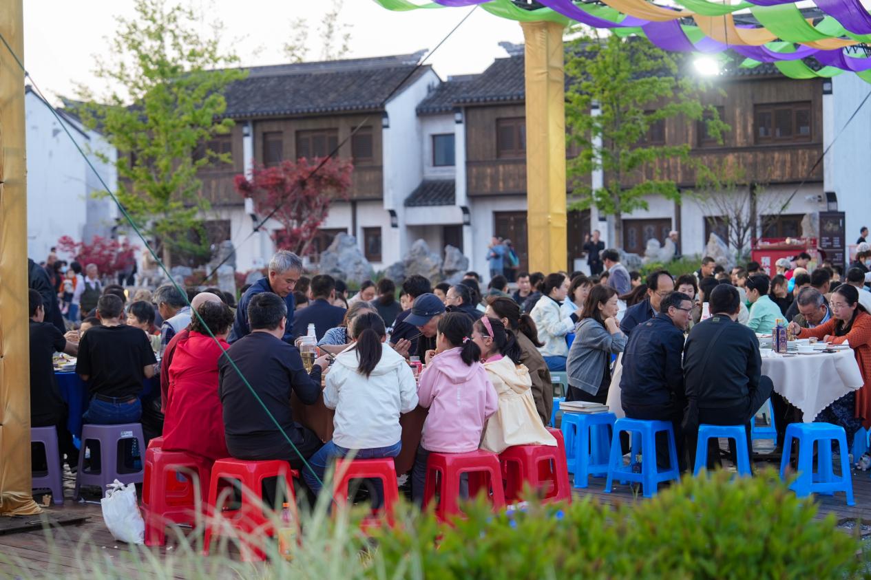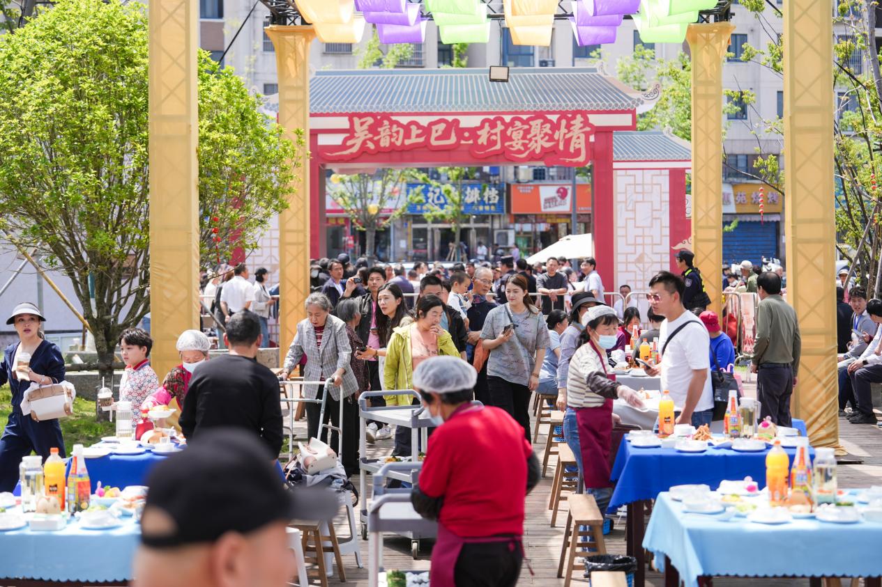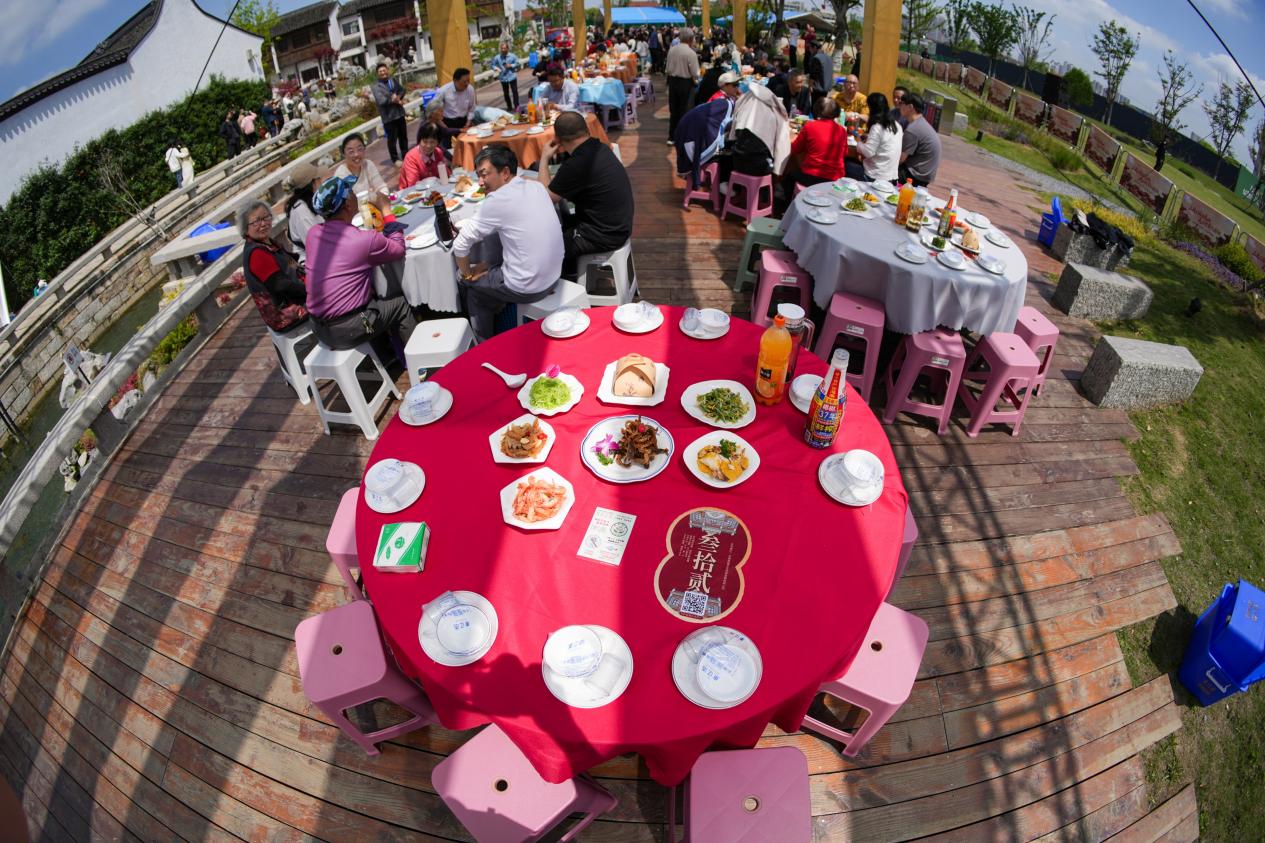 中国江苏网讯 农历三月初三,100桌的流水席在堰桥街道历史文化街区东侧一字排开,原汁原味无锡老菜的香气飘出半条街,桌前碰杯声、笑闹声、小孩追跑的嬉闹声混在一起,连不少外国游客都操着不太熟练的无锡话夸“闹猛得很”。本次“吴韵上巳·村宴聚情”首届三月三流水宴全程共设百桌盛宴,吸引众多群众参与活动,不同于传统村宴的聚会属性,无锡市惠山区堰桥街道新时代文明实践所将文明理念自然嵌入百年民俗载体,走出了一条“润物细无声”的乡风涵养新路径。