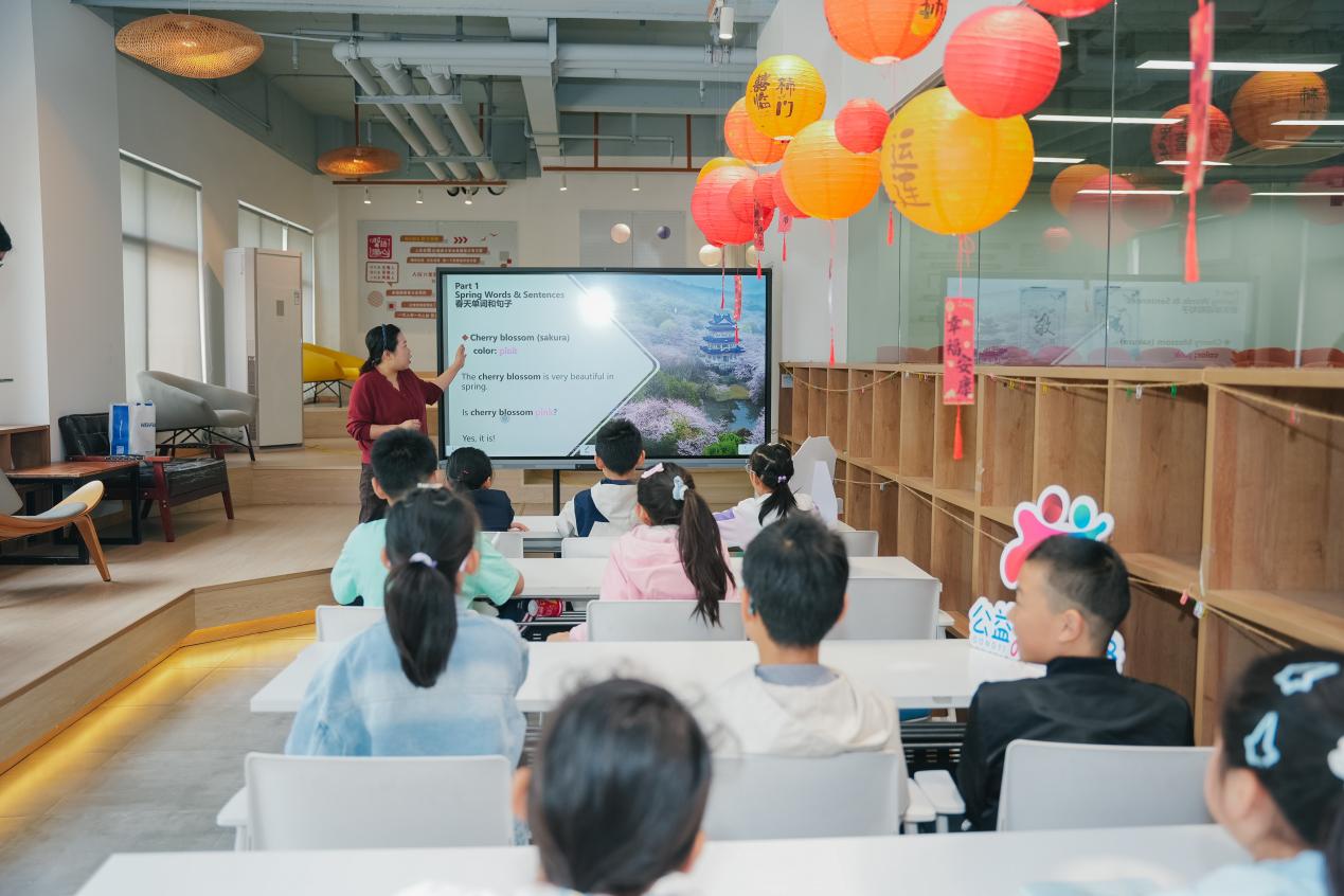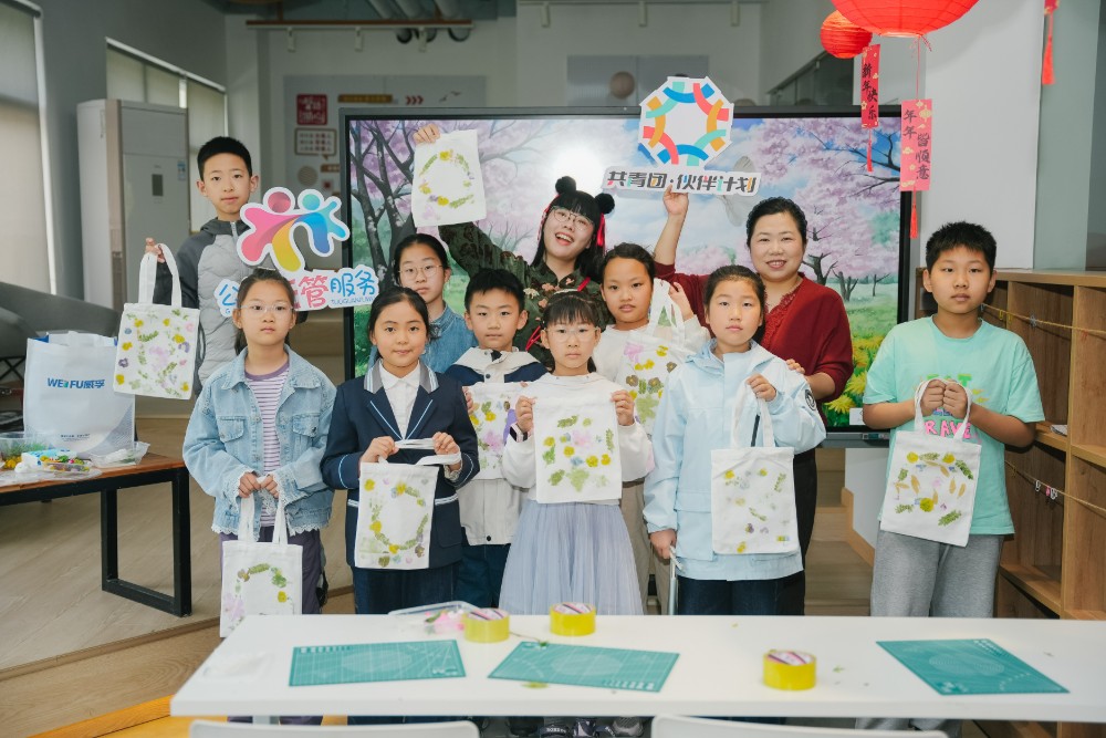启动仪式后,公益英语课堂火热开讲。阿里斯顿和电装天电子的志愿者老师以“春天的花朵”为主题切入,大家不仅学会了用英语说出各种花的名字,还在老师的指导下亲手体验了有趣的植物拓印手工包。孩子们将花瓣和树叶的纹理留在布袋上,把春天的色彩和美好的记忆一起珍藏了起来。