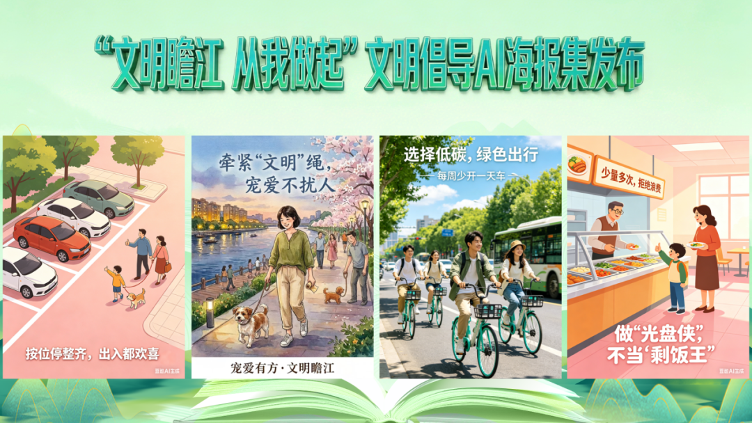 活动同步设置文明倡导篇章,邀请优秀文明引导员、青年律师分享文明引导经验、开展“普法促文明”主题宣传,正式发布《“文明瞻江 从我做起”文明倡导AI海报集》,后续将投放到辖区公共宣传阵地,围绕遛狗牵绳、有序停车、节约粮食、绿色环保等主题开展常态化宣传。