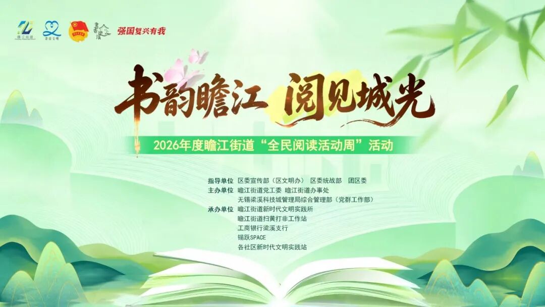 中国江苏网讯 为深入贯彻落实《全民阅读促进条例》,扎实推进书香社会建设,浓厚“书香瞻江”文化氛围,4月21日,瞻江街道联合无锡梁溪科技城管理局综合管理部(党群工作部)、工行梁溪支行、锡跃SPACE等举办“书韵瞻江 阅见城光”2026年全民阅读活动周活动。区委宣传部分管领导、街道相关领导以及辖区行业代表、群众朋友们参加活动。