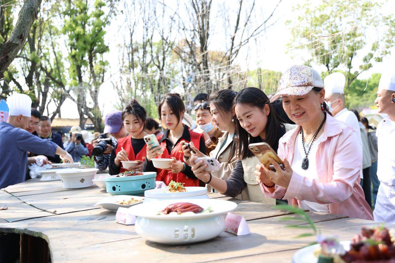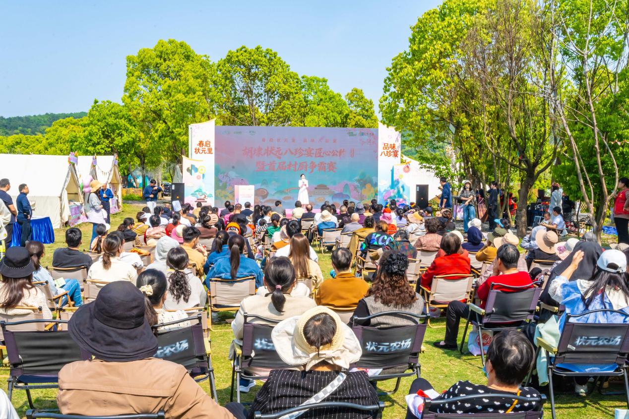 春启状元里,品味八珍宴。4月24日,“乡逢是首歌”第四季·“艺”起趣村游——胡埭“状元八珍宴”匠心公约发布仪式暨首届村厨争霸赛在状元古道万家田园举行。无锡市餐饮协会的专家评委、美食达人、媒体代表、文化学者、统战各界人士代表,以及来自胡埭及周边餐饮单位的大厨们、村民家庭代表、企业食堂厨师代表等齐聚状元故里,共赴这场烟火气与书卷气交织的田园盛宴。