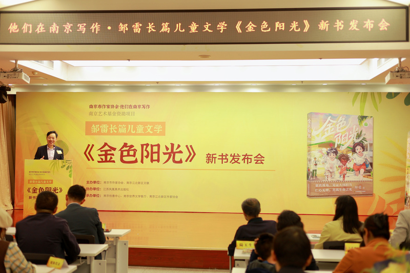 10月19日,著名作家邹雷长篇儿童文学《金色阳光》新书发布会在南京南汽大厦一楼报告厅成功举办。活动由南京市作家协会、南京江北新区文联联合主办,江苏凤凰美术出版社协办,南京创意中心、南京世界文学客厅、南京江北新区作家协会共同承办。