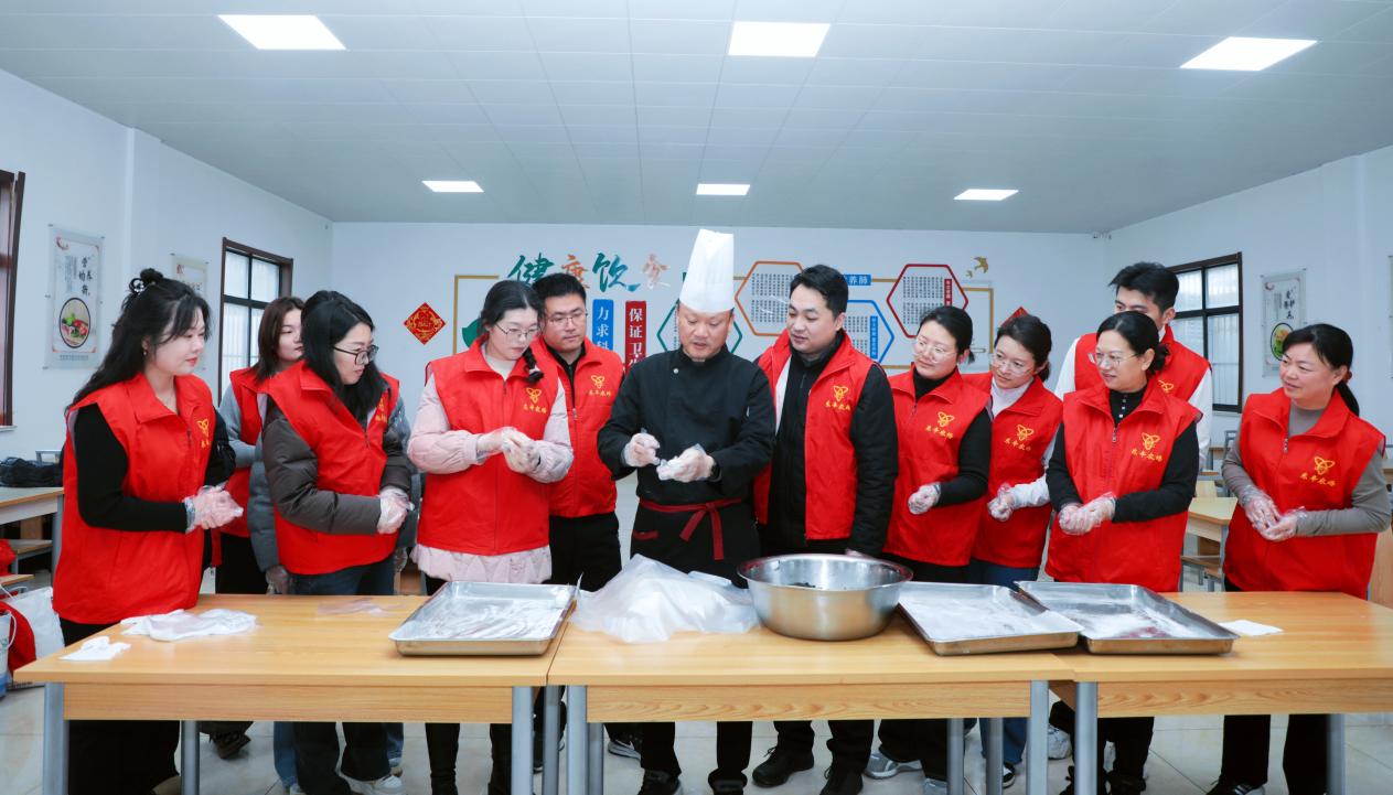 招待所北餐厅内暖意融融,糯米粉、黑芝麻馅等食材早已备好,大家分工有序,揉面团、包馅料、搓汤圆,整个过程有条不紊,配合默契。许多青年志愿者是第一次尝试,在“前辈”的耐心指点下反复练习,技艺从生疏逐渐熟练。欢声笑语间,一颗颗雪白软糯、圆润饱满的汤圆摆满托盘,空气中弥漫着香甜的气息。