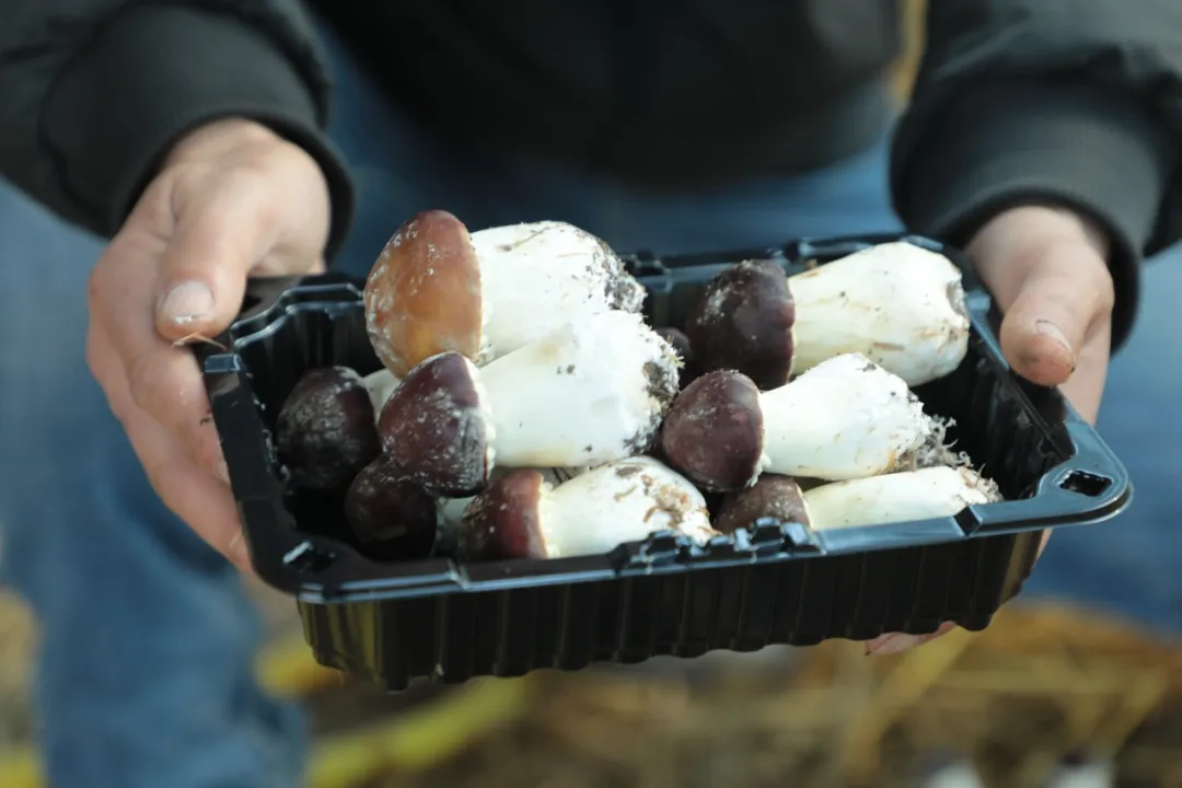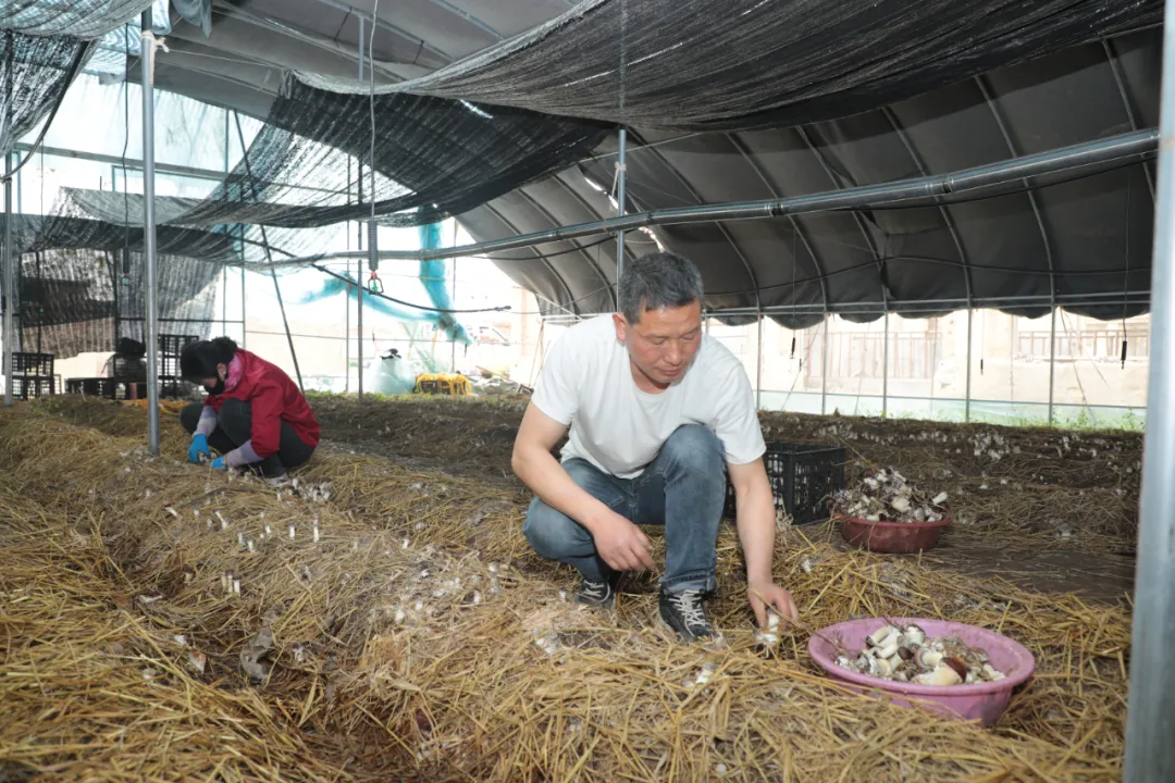 步入种植大棚,浓郁的菌香扑面而来,沁人心脾。菌床上,赤松茸在培养料间错落生长、形态各异,有的刚刚冒尖,小巧玲珑;有的已然成熟,浑圆饱满。工作人员弯腰俯身小心翼翼地采摘,动作轻柔细致,生怕损伤了这来之不易的“宝贝”。大棚外,工人们有条不紊地揭开保温棉换上遮阳网,保证棚内温度维持在20℃左右,为菌类生长营造最佳环境。