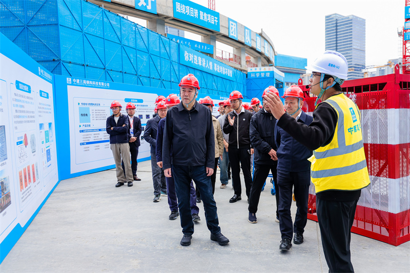 观摩会现场,设置了企业介绍与精品工程、关键技术与智能建造、智能监管与安全设备、精益建造与质量管理四大展区,全方位呈现项目在钢结构建设中的安全、质量、智能建造等方面的亮点。