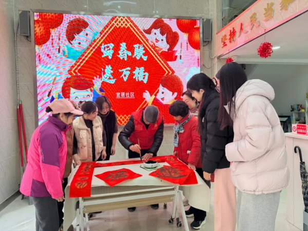 琵琶街道宜居社区新时代文明实践站开展“写春联 送万福”活动,书法爱好者与志愿者挥毫泼墨,将马年期许与社区暖意凝聚于笔端,一副副春联福字承载祝福走进千家万户,在传承年俗中拉近邻里距离,为社区营造出祥和文明的新春氛围。