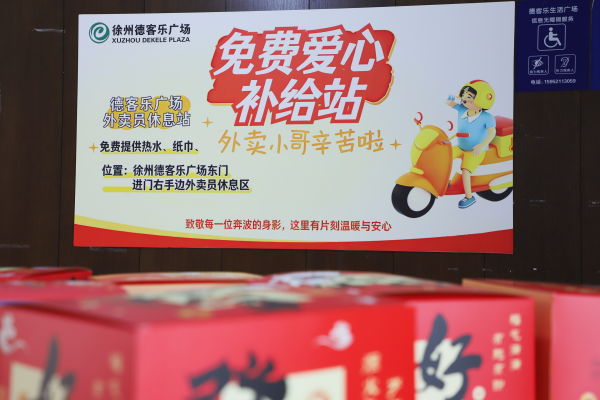 春节期间,德客乐广场的“免费爱心补给站”不仅提供热水、纸巾、糖果饼干等应急补给,还贴心地为外卖员们准备了免费暖心礼包。当天,靳师傅收下后连忙感谢道“谢谢关心!跑单间隙歇歇腿,很有必要!”同样送餐来此的外卖员小赵也说:“一般我都是把车子支起来坐着休息,姿势很别扭,能有个专门休息的地方确实蛮好的!”