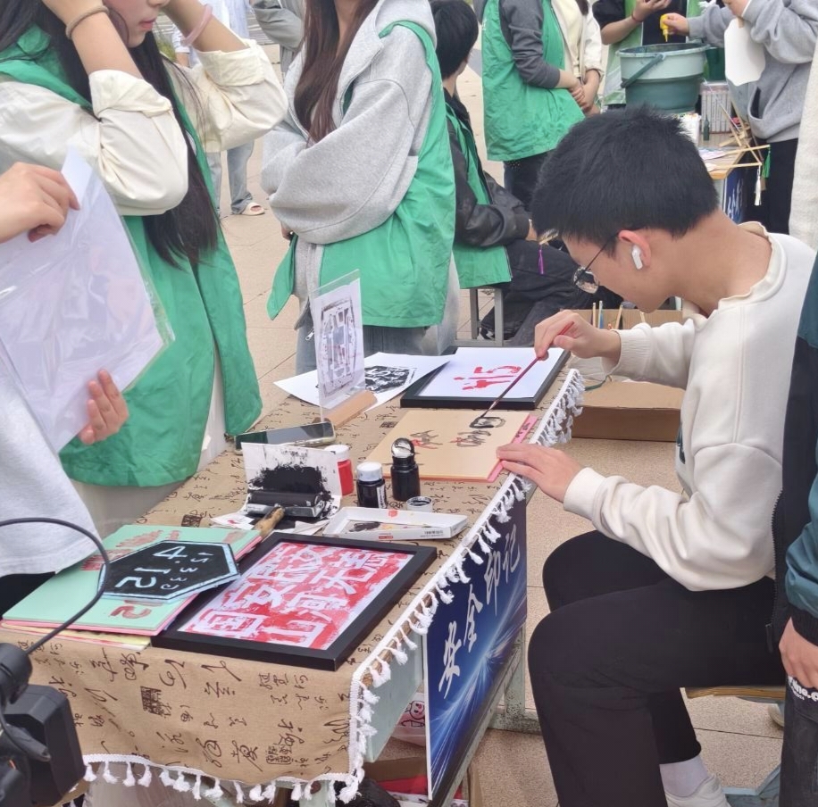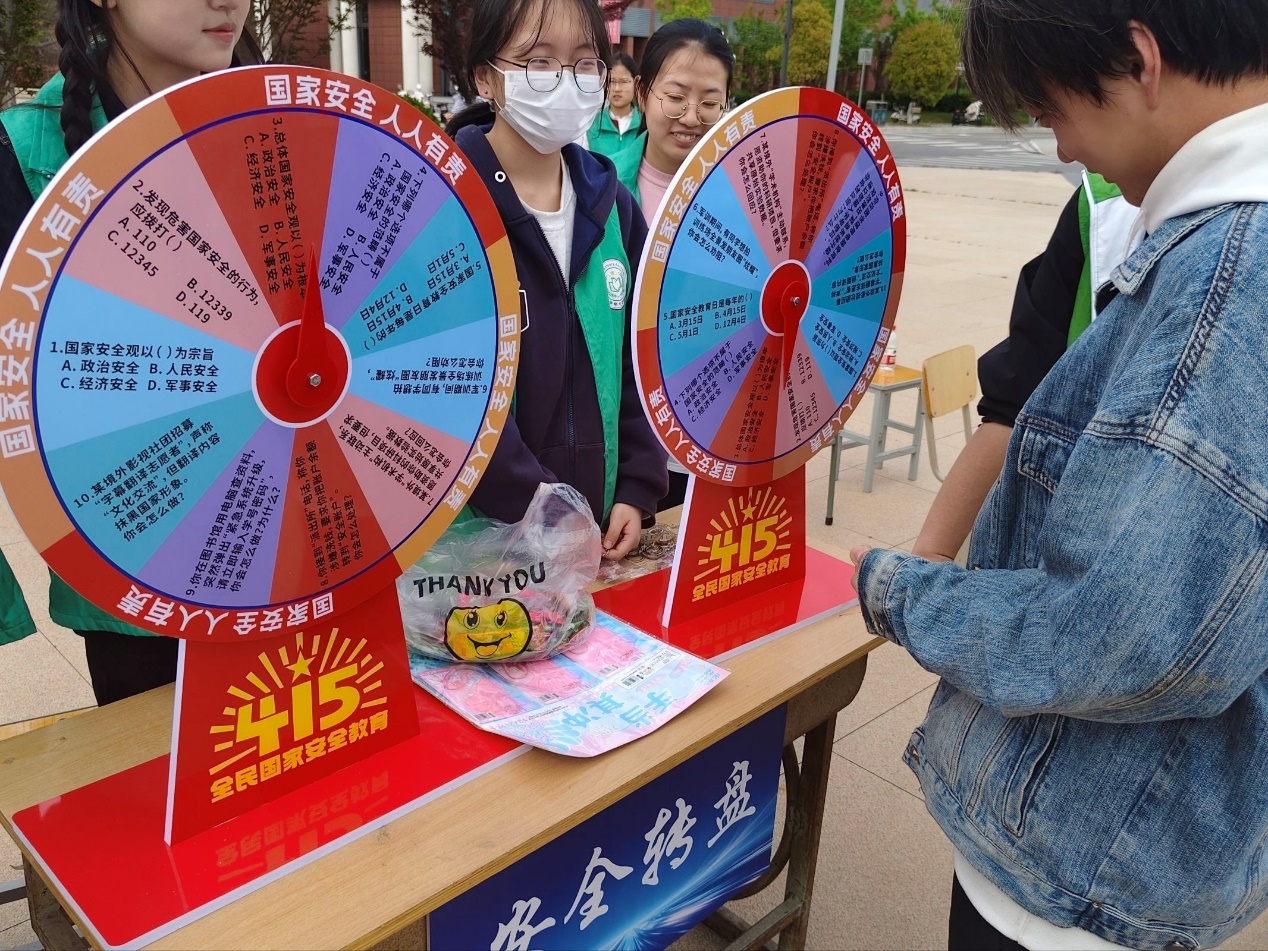 在强化理论学习的同时,展览现场还设置了多个互动体验环节。“安全知识大转盘”以趣味问答形式巩固展览所学;“风险防范沙包投掷”将风险概念转化为具体的投掷游戏,师生在参与中强化底线思维;“安全拓印”则用传统技艺印下“居安思危”等警句,在文化浸润中增强使命感。这些互动项目有效提升了活动的吸引力和参与度,让严肃的国家安全教育在轻松活泼的氛围中深入人心。