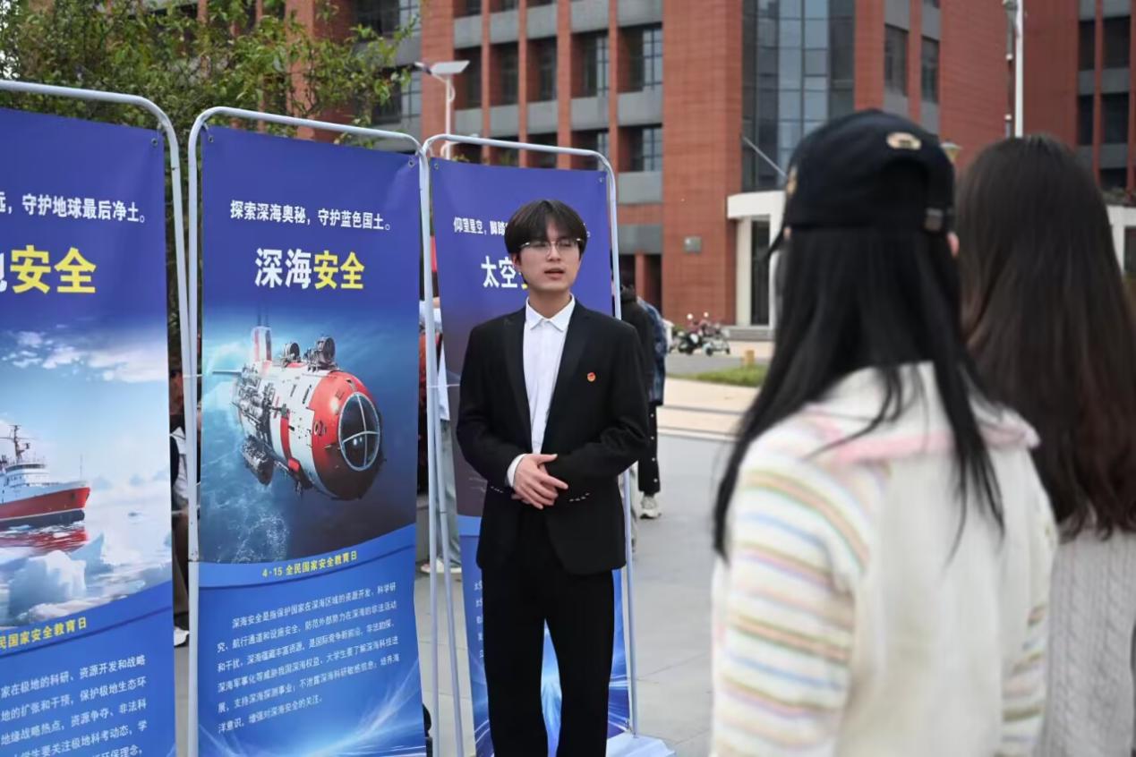 本次科普展围绕总体国家安全观的重点领域,精心设计制作了20余块主题展板,采用图文结合、数据可视化的方式,深入浅出地阐述了各领域安全的基本内涵、相关法律法规以及公民应尽的责任。活动中,学生讲解员为参观师生提供分领域、分专题的导览讲解,引导师生认识到无论从脚下的国土到头顶的太空,还是从“有形的”边疆到“无形的”网络空间,亦是从古老的文化传承到前沿的科技竞争,国家安全是涵盖方方面面的“总体”安全,无处不在,人人有责。
