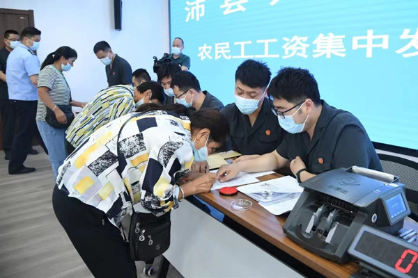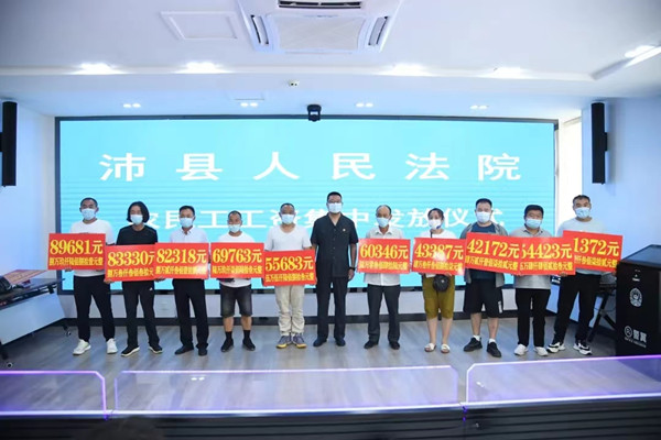 中国江苏网6月27日徐州讯 为深入推进“为群众办实事示范法院”创建,进一步提升人民群众司法获得感,6月21日,沛县人民法院集中为62名农民工办理案款发放手续,及时将150余万元工资款发放到位。