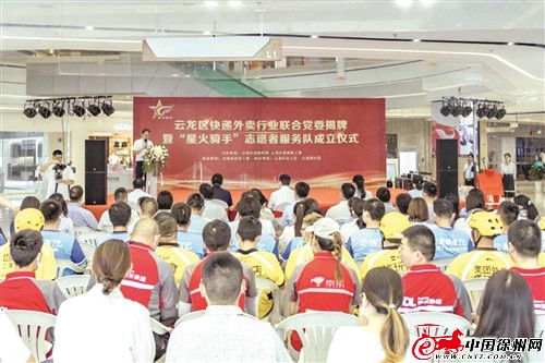 6月22日,云龙区快递外卖行业联合党委揭牌,并组建以党员为骨干的“星火骑手”志愿者服务队,引领每一名骑手如星星之火般融入城市发展,以燎原之势成为社会共建共治共享的最佳帮手。