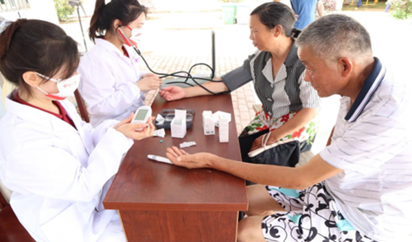随后,红色医疗服务队先后在9个行政村开展免费体检服务,为村民们测量血压、血糖,并提供相关健康常识。同时,为各村青少年做视力情况排查,发放调查问卷进行数据采集,了解村民生活情况。