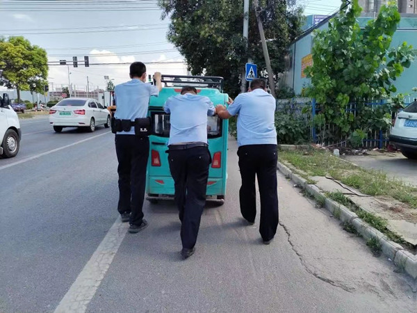 酷暑高温天气,高作派出所的民警们在街道巡逻时发现一名老人正费力地推着三轮车前行,民警连忙下车询问。得知原因后,民警主动帮助老人家推车,并将其送至附近的修理厂。“那么热的天,麻烦你们了,要不是有你们,我还不知道要走多久呢。”民警这一小小的举动,收获了老人家发自肺腑的感动。
