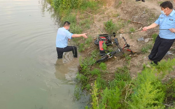 近日,在官山派出所辖区,一名13岁少年骑两轮电动车回家途中,不慎掉入河中。巡逻民警到达现场后,和群众合力将落水儿童救助上岸,并下水将其电动车打捞上岸。