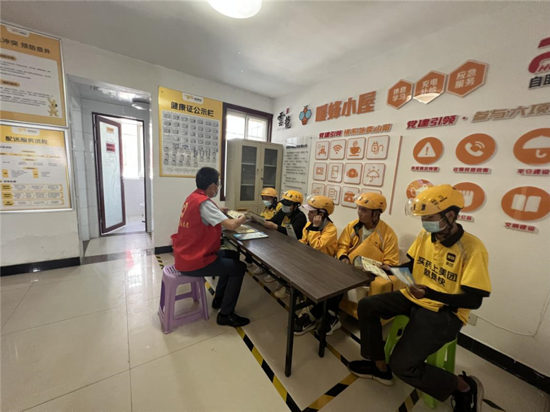 中国江苏网9月9日徐州讯 近日,在徐州市大龙湖街道丁庄社区“暖蜂小屋”内,网格律师郝佩佩用平实的语言、翔实的事例帮助外卖小哥们掌握基本法律常识,提升法治素养,有效提高尊法、守法、学法、用法的自觉性。