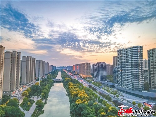 新城片区顺堤河两岸绿树成荫,构成绿意盎然、充满生机的美丽画卷。