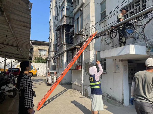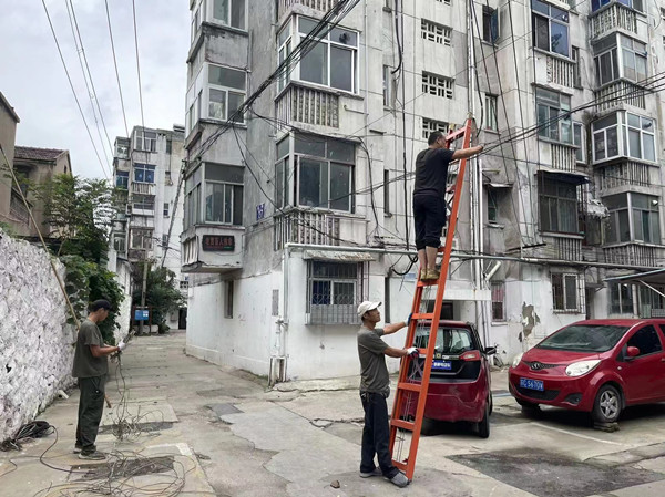 经街道与多方联系沟通,决定由通信公司对辖区内公共区域的一般性问题进行清理和捆扎,复杂问题召开现场会共同研究解决,提高整改质量。同时,特别关注线缆跨楼部分的整治,剪断飞线前重新布线、接线,保障居民日常生活用网、用电。为了确保施工进度与安全,丰财街道创建专班现场监督指导施工,确保施工质量。