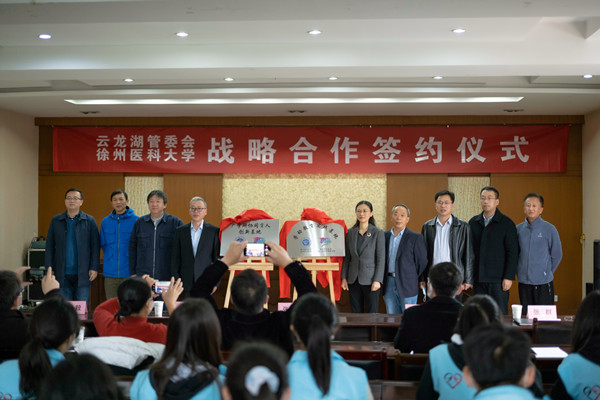 中国江苏网11月22日徐州讯 绿水青山就是金山银山。党的二十大报告中指出:尊重自然、顺应自然、保护自然,是全面建设社会主义现代化国家的内在要求。必须牢固树立和践行绿水青山就是金山银山的理念,站在人与自然和谐共生的高度谋划发展。11月22日上午,徐州市云龙湖风景名胜区管理委员会与徐州医科大学签订战略合作框架协议,并举行产学研协同育人创新基地和劳动教育实践基地揭牌仪式,正式启动景校战略合作计划。