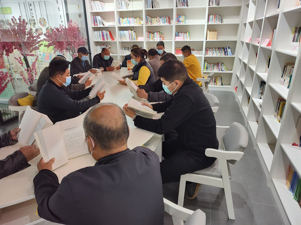 走进陈楼村农家书屋,《党的二十大报告辅导读本》《党的二十大报告学习辅导百问》……一本本学习书籍整齐划一地摆放在书架上,村民们围坐在一起,边阅读边交流,分享学习成果。