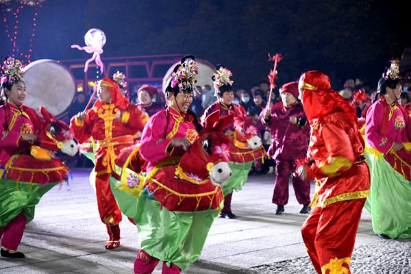 威风锣鼓、安塞腰鼓、跑毛驴、抬花轿等特色民俗非遗节目轮番上演,身着戏服的马庄村民将一个个角色表演得惟妙惟肖,赢得现场群众的阵阵喝彩。