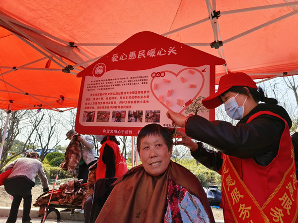除此以外,志愿摊位还设置了大量互动环节,九里社区“文明养犬很圈粉”、徐矿城社区“消防入户筑防线”、天齐社区“电动车义务上牌,雷锋服务送到家”等15支各具特色的志愿服务队,为居民提供文明养犬、电动车上牌、健康义诊、全民健身、免费理发、小家电维修、剪纸书法等志愿服务项目,让居民在“家门口”就能享受到文明成果。