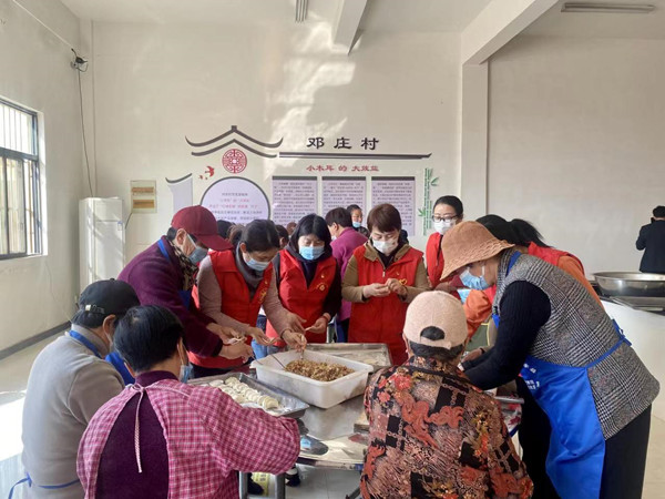 和面、剁菜、拌馅、擀皮、包饺子……活动在志愿者和老人们的欢声笑语中拉开帷幕。范楼镇文明实践所的志愿者与村党员干部、村民们一起进行了一场“友谊最美饺子赛”,大家既拼速度、比质量,也分享技巧、互相帮助,活动现场其乐融融。