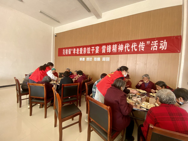 中国江苏网3月8日徐州讯 饺子作为传统美食,既是传统文化的载体,又承载着“更岁交子”、团圆福禄的美好寓意。为进一步促进乡风文明建设,弘扬中华民族尊老、敬老、爱老的传统美德,近日,丰县范楼镇举办了以“孝老爱亲饺子宴 雷锋精神代代传”为主题的温情饺子宴活动。