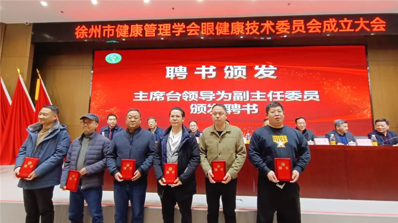 徐州市卫生健康委员会党委委员、副主任曹永,徐州市科学技术协会副主席宋恒,徐州市第一人民医院党委委员、纪委书记马雪岩,徐州市民政局社团管理办公室主任赵涛,徐州市卫生健康委员会疾控处处长、徐州市健康管理学会总顾问曹配亮,江苏省眼镜行业协会会长蔡来成,徐州市健康管理学会理事长缪华,徐州市眼病防治研究所书记王海洋等领导及行业代表共同出席了此次盛会。