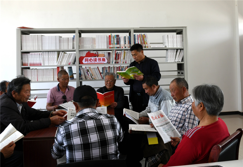 中国江苏网4月20日徐州讯 4月19日上午,徐州睢宁县邱集镇小苏村石俊芳、朱守民、王林等10多位村民来到村里的农家书屋,在“同心读书角”书架前找到自己喜爱的统战刊物阅读起来。当天,村新时代文明实践志愿者为来到“同心读书角”的群众开设了今年第二期“同心讲堂”,宣讲了社会主义核心价值观,引导群众自觉弘扬中华传统美德,向上向善、孝老爱亲,重义守信、勤俭持家。