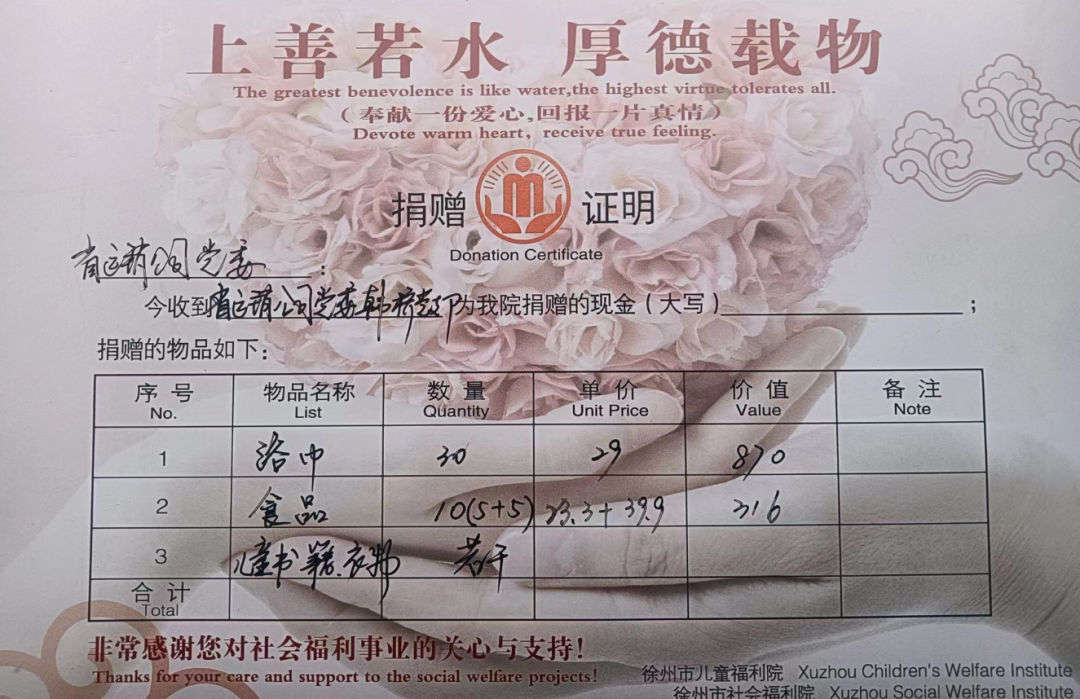 去年,韩桥站党支部组织了为徐州市社会福利院孤儿“送温暖”活动,从儿童书籍到日常衣物,满满四个口袋,装着大家朴实的爱。