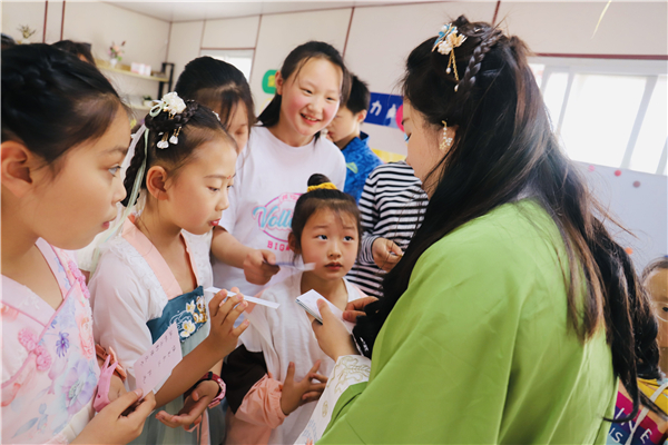 护苗志愿者们精心挑选了一批经典读物,用诗词点亮“绿书签”,通过趣味吟诗、填词等形式,把绿色阅读巧妙地融入到活动中,营造出多读书、读好书的浓厚文化氛围。一枚枚小巧的绿书签就像一粒粒种子,把绿色的希望播撒在每个孩子心间。
