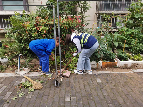 近日,在天悦华景小区,植物园社区的工作人员、网格员、党员志愿者和“两新”党员们手拿扫帚、夹子、垃圾袋等工具,集中清理小区花坛内的杂物、摆放非机动车、更换破损宣传展板,并向居民发放“爱护环境倡议书”,引导居民从自身做起,养成爱护环境、保护家园的文明生活习惯。
