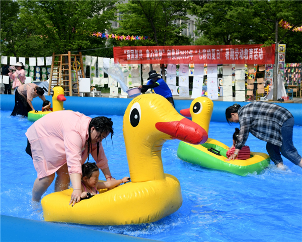 赛龙舟,水上乐园绽放缤纷童年。“加油加油……”,6月20日下午,在邱集镇中心幼儿园的水上乐园,端午节清凉一夏亲子活动在此起彼伏的呐喊声中举行。当天的比赛的项目有赛龙舟、泼水大战、泡沫大战,为加强儿童劳动教育,幼儿园还开展了寓教于乐的捕鱼大赛。