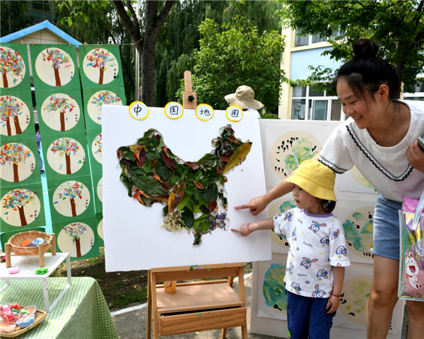 儿童美术展,童真童趣尽情释放。一张张贴纸画、一幅幅水墨画、一个个创意粘贴让人流连忘返,为培养孩子的环保意识,邱集镇中心幼儿园的老师指导孩子们利用树叶、麦秸、包装盒等生活中的废弃物,创作了3000多幅贴纸画、创意粘贴作品,生活中的废弃物在孩子们手中变成了艺术品,童心发现了美,童趣创造了美。(胡昌辉 张思强)