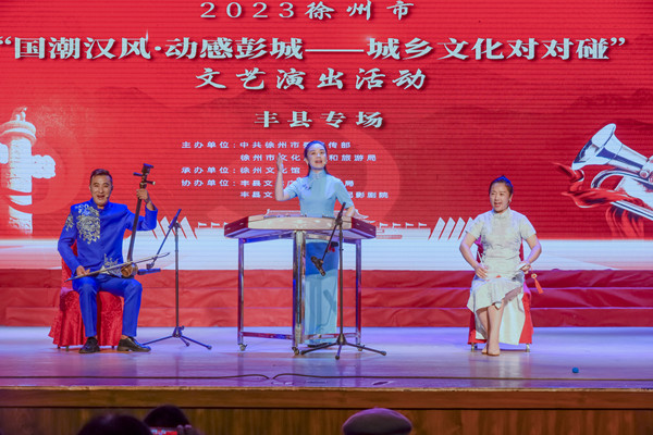 为进一步促进城乡文化交流,构建文化惠民新平台,推进文化事业高质量发展,由徐州市文化广电和旅游局组织开展的“大地欢歌——城乡文化对对碰”巡演活动,已成为江苏省和徐州市重要的文化活动品牌。此次巡演活动走进丰县,音乐、舞蹈、曲艺、小品等10多个精彩节目轮番上演,以群众喜闻乐见的形式,为当地居民带来了一场高艺术水平的“视觉盛宴”。