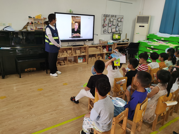 近日,在鼓楼实验幼儿园开展的反诈防骗宣传课上,小朋友们积极与社区网格员展开互动。彭校社区网格员用通俗易懂的语言、典型的案例告诉师生们电信诈骗的常见手段,并教导他们在遭遇电信诈骗后该如何采取补救措施,尽可能挽回损失。