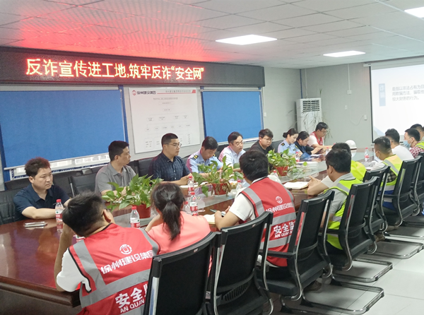 “工友们,咱们出来赚钱不容易,如果接到来历不明的电话,不要轻易透露个人信息,不要轻易向陌生人转账汇款,遇到可疑情况要及时报警求助。”连日来,黄楼街道深入辖区施工场地开展反诈宣传,将反诈宣传课堂“搬”进建筑工地,为工友们戴好“反诈安全帽”。