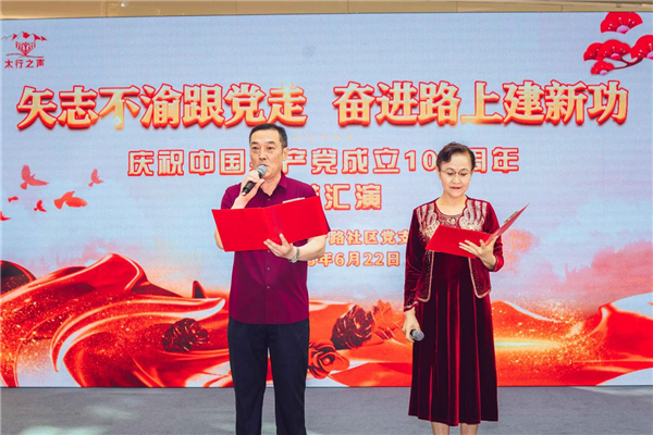形式多样的节目轮番上演,悠扬熟悉的旋律,慷慨激昂的歌声,饱含深情的朗诵,热情洋溢的舞蹈,12个优秀的文艺节目,表达对党的感恩之心、对祖国的美好祝福,展现了太行路社区良好风貌,也让在场党员群众深刻领会红色精神,把传承红色精神化为行动自觉。