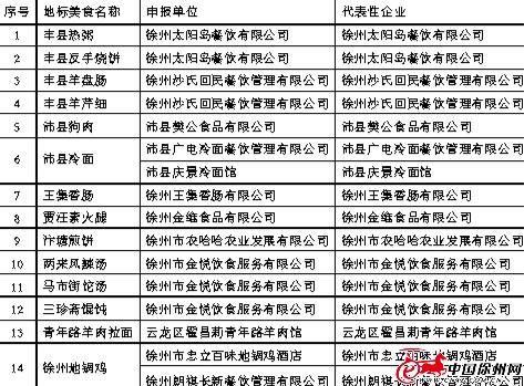 附件:徐州地标美食及其代表性企业名录推荐名单(第一批)